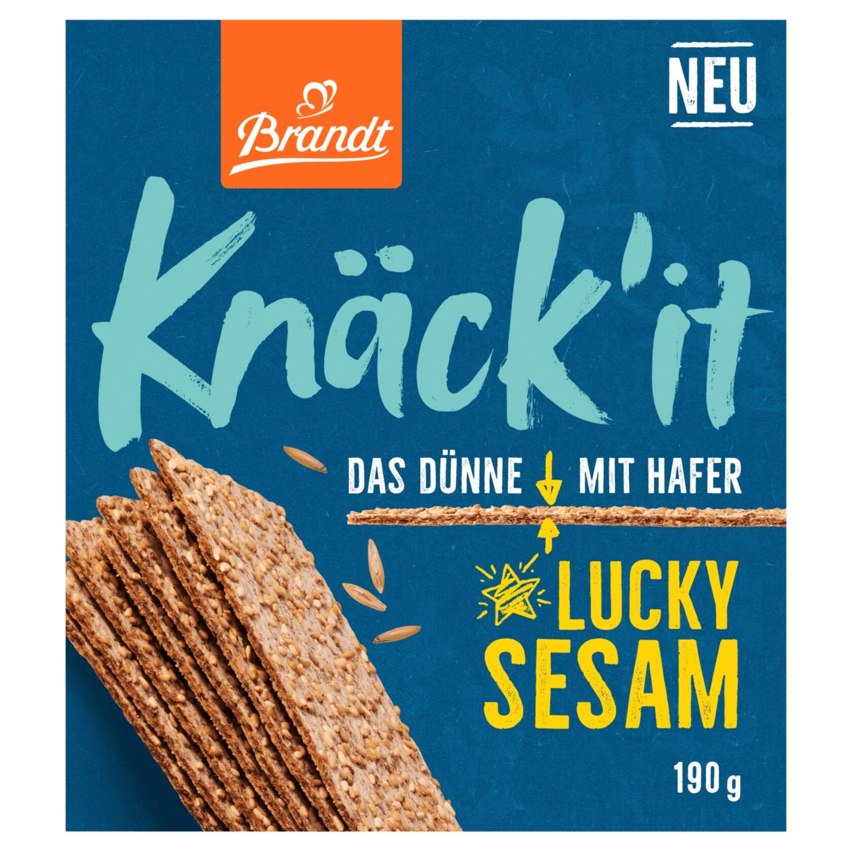 Knäck’it! ist ein leichter Knäcke-Snack für jede Gelegenheit von Brandt. Der Name entstand mit Unterstützung der Düsseldorfer Agentur Nomen. Und er klingt so, wie das Produkt schmeckt: Knackig-lecker!