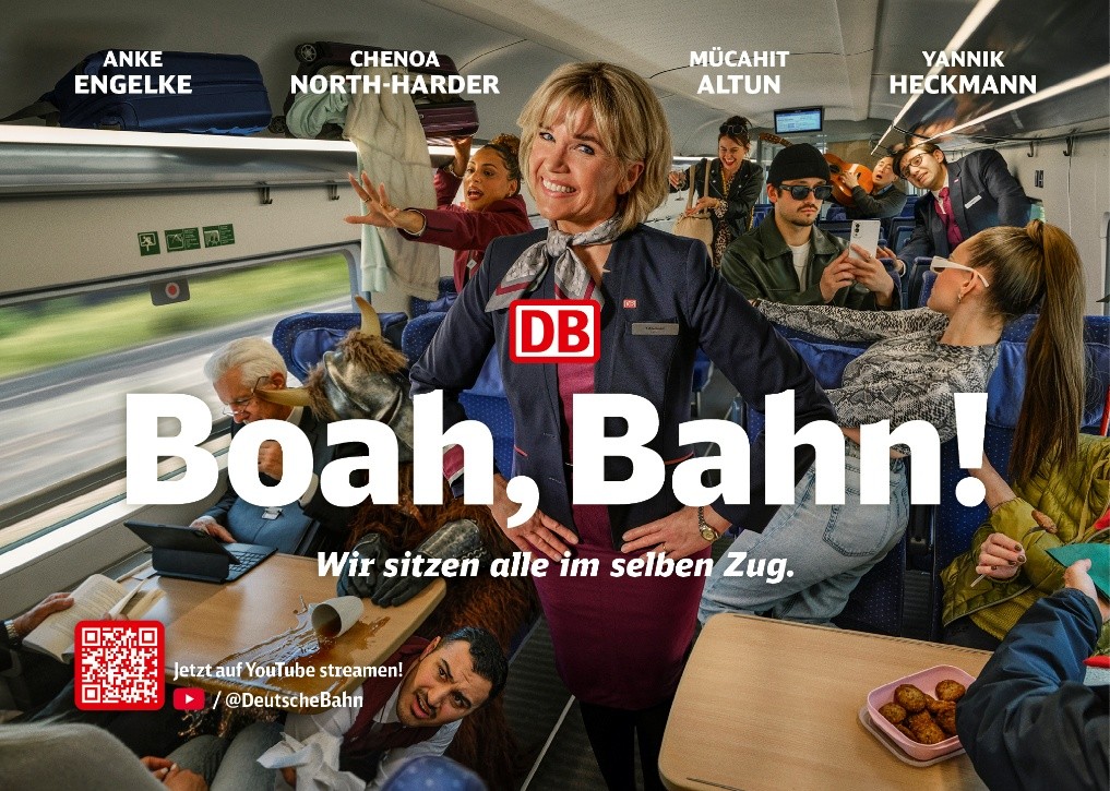 • Die Deutsche Bahn tritt, unterstützt von Publikumsliebling Anke Engelke, die Flucht nach vorne an und bekennt sich zu ihren Schwächen, darunter Verspätungen, Zugausfälle und gestresstes Personal.